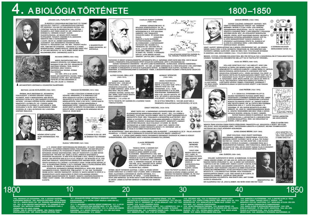 8 db-ból álló oktatótábla sorozat, mely a nagy biológusok történetét írja le. Lemosható mûbõrre nyomva, lécezett, zsinórozott kivitelben. Mérete: 84 x 114 cm